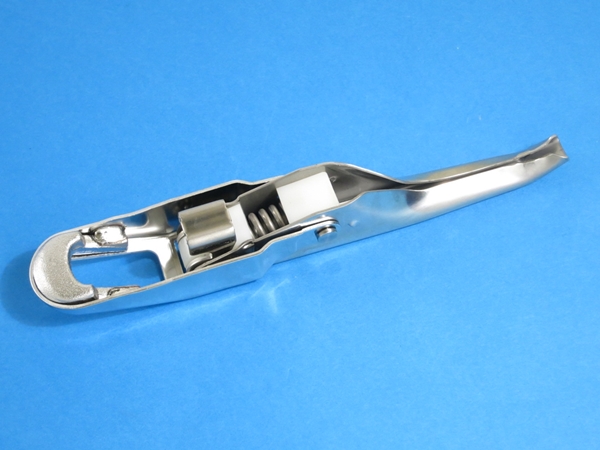 〇ステンレスプレスエビ金 AB型は、プレスで成型されたエビ金ハンドル/バネカンです。流線型でスマートな外観です。