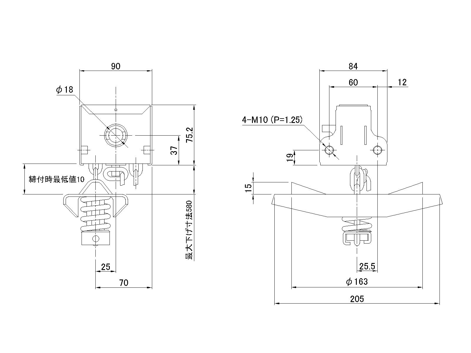 仕様//中型トラック用、適用タイヤハブ径:φ164、最大吊タイヤ重量:65kg、U溝型、センター吊用
