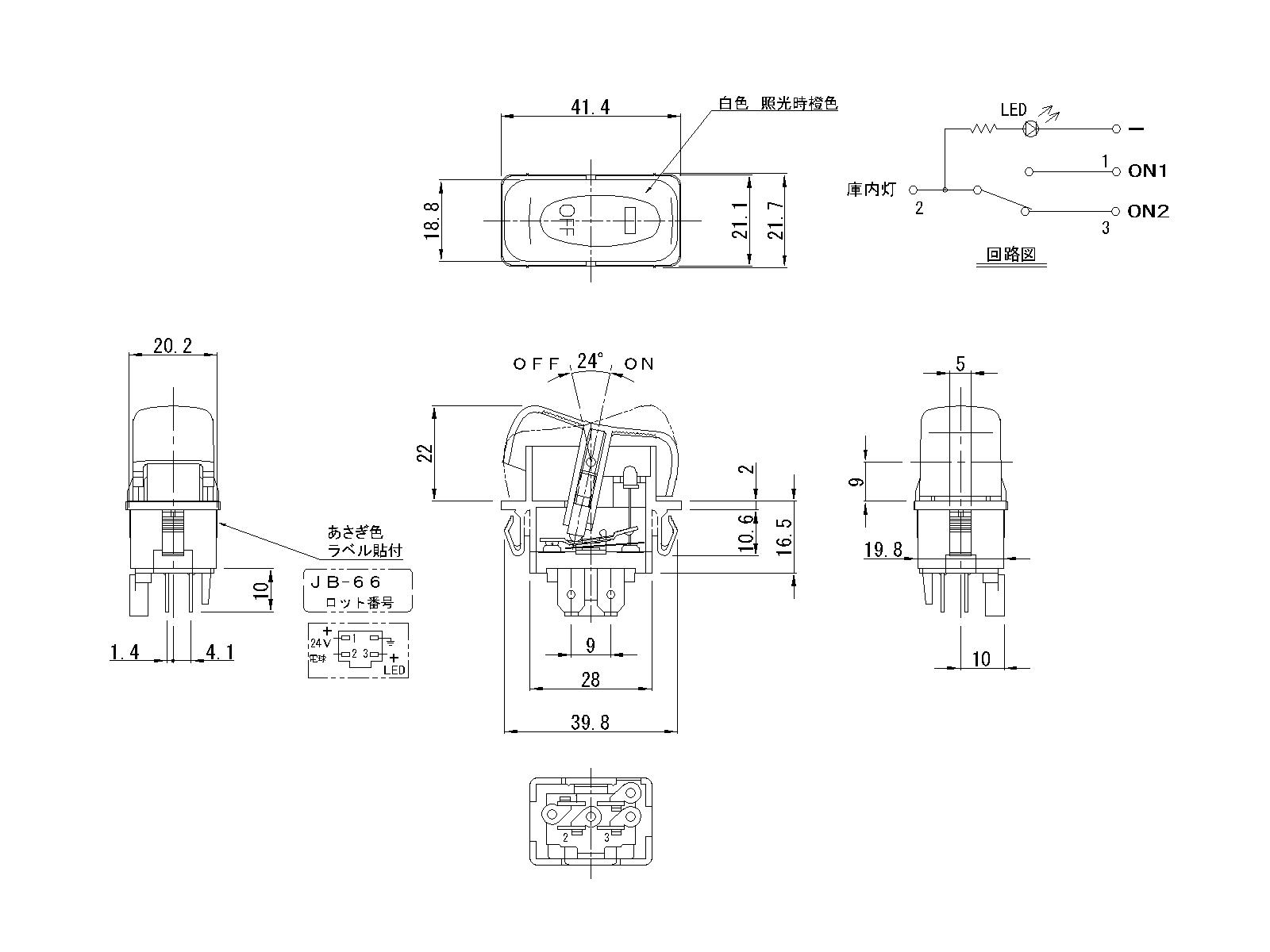 規格// 開關類型:蹺蹺板開關、開關分類:ON-ON 步進式、額定值:DC24V-10A、顯示:無文字、內建 LED、適用於 Fuso 大型(2017 年 5 月起)、中型(2019 年 10 月起)和小型(2017 年 5 月起)、中型(2019 年 10 月起)和小型(2024 年 6 月起)