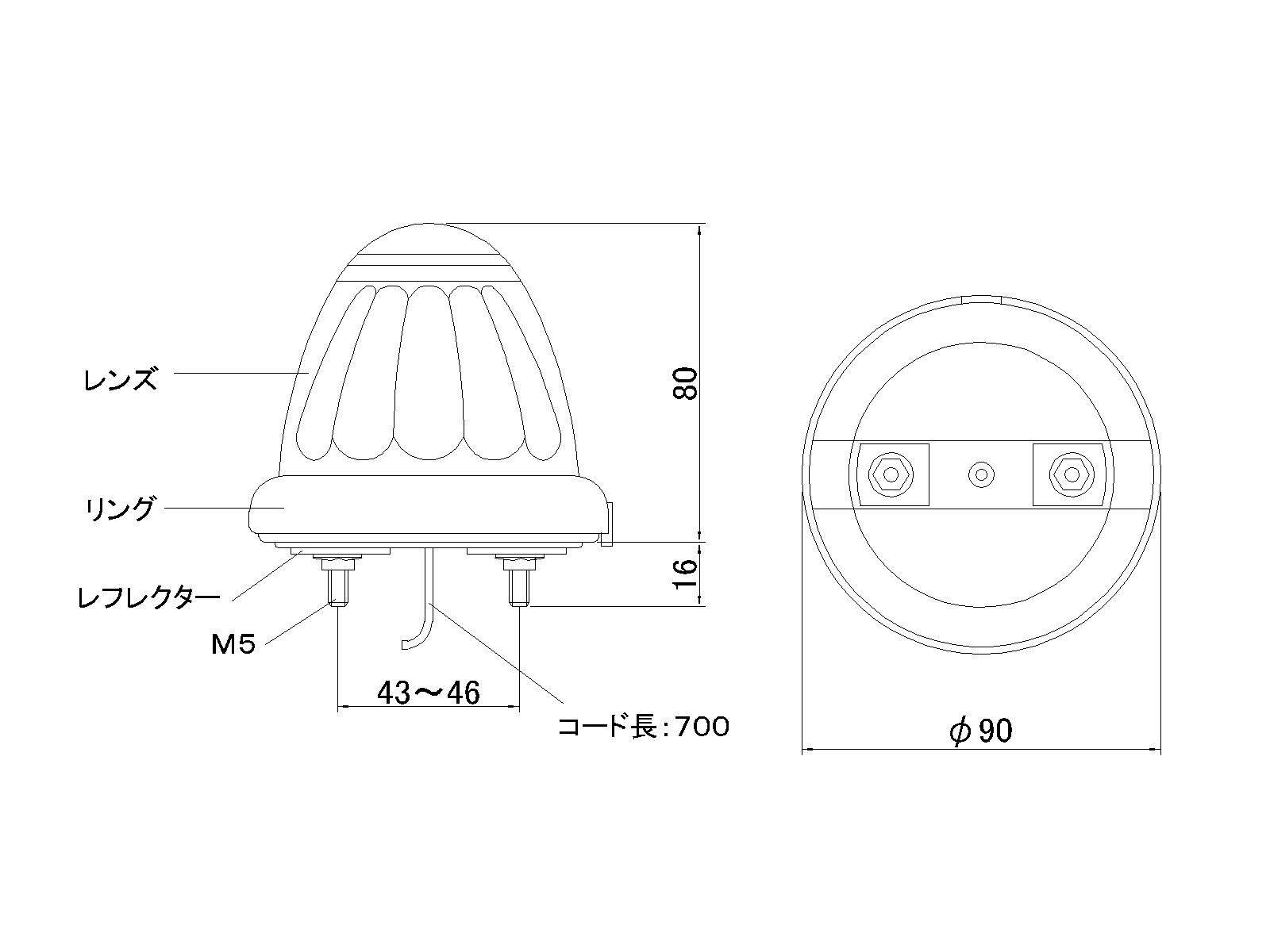 寸法//径:φ90×高さ:80mm、取付ピッチ:43~60mm、コード長さ:約700mm(0.3sq)、重量:0.145kg