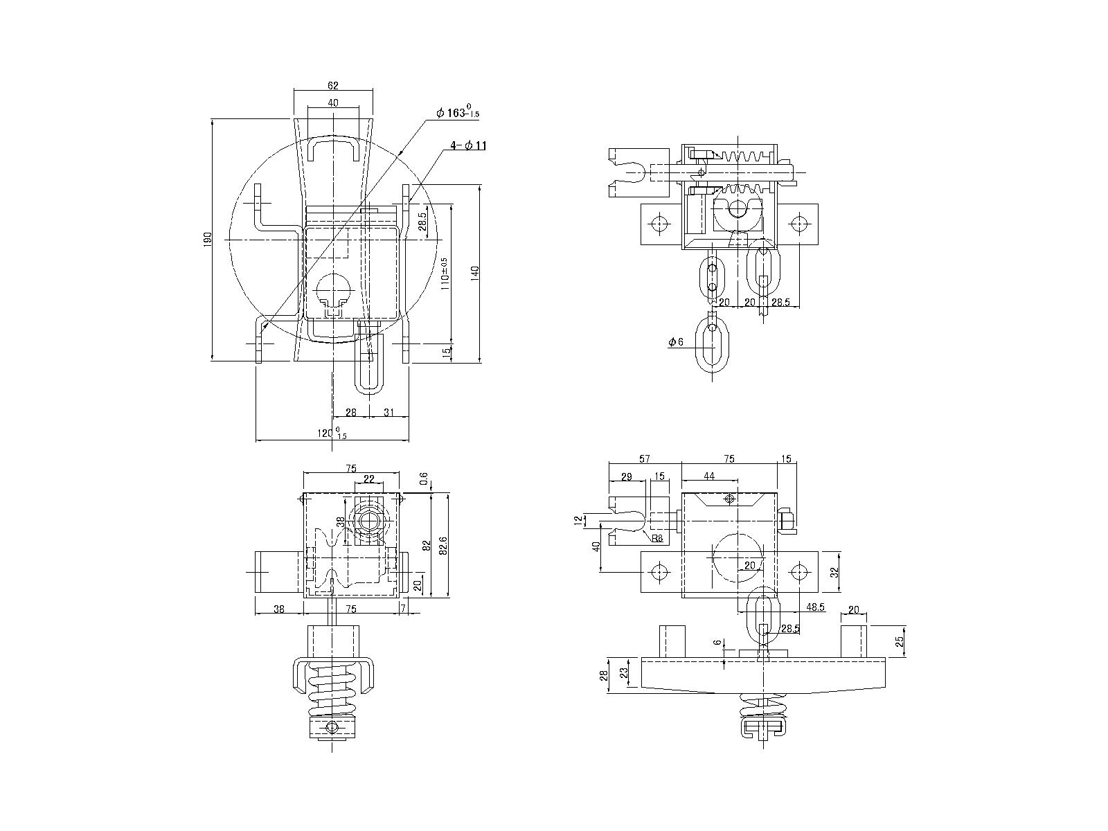 中型ダンプのタイヤハブ径:φ164専用のスペアタイヤを格納する装置です。吊下げタイヤサイズ:8.25R16-14PR専用ですのでご注意ください。ハンドルの口金形状が、U溝型です。