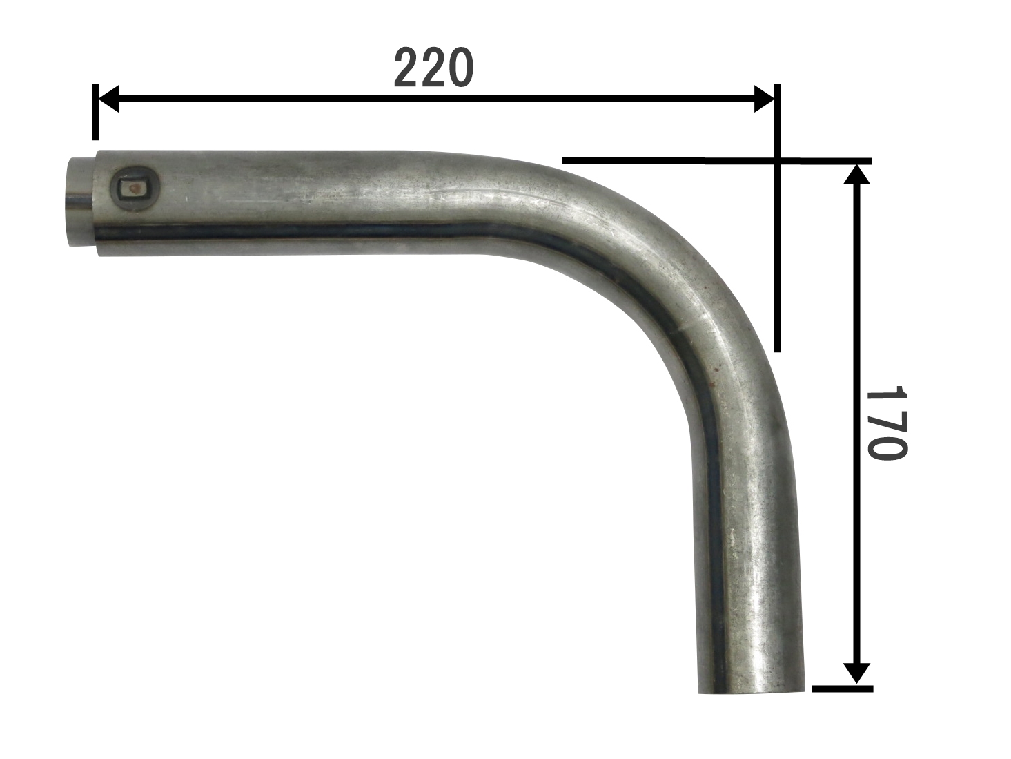 Dimensions // Pipe diameter: φ34, Corner bend x length (excluding joints): approx. 170 x 220 mm, Plate thickness: 2.3 mm, Weight: 0.563 kg