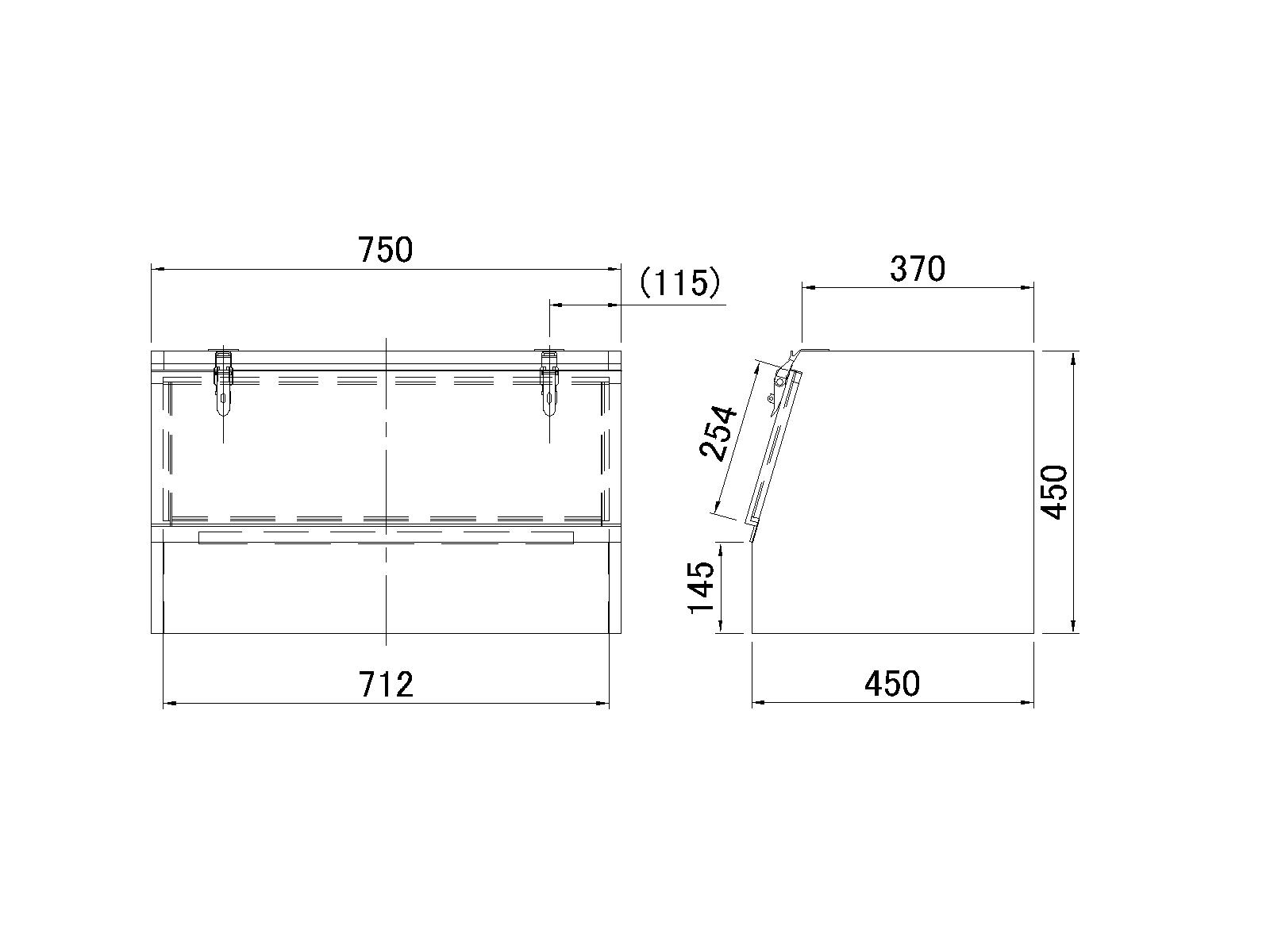Dimensions // Length: 750 x Depth: 450 x Height: 450 mm, Height under lid: 145 mm, Body plate thickness: 0.8 mm, Lid plate thickness: 1.0 mm, Weight: 11.30 kg