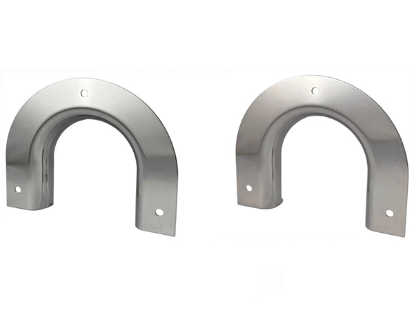 Horseshoe-shaped rope guide frame for aluminum blocks. This type drills holes into the floor of the truck tailgate. Suitable for low tailgates such as loading vehicles and construction machinery transport vehicles. For aluminum blocks with no step on the lower rail (e.g. JB tailgate). The surface of this product is electrolytically polished for a glossy finish.