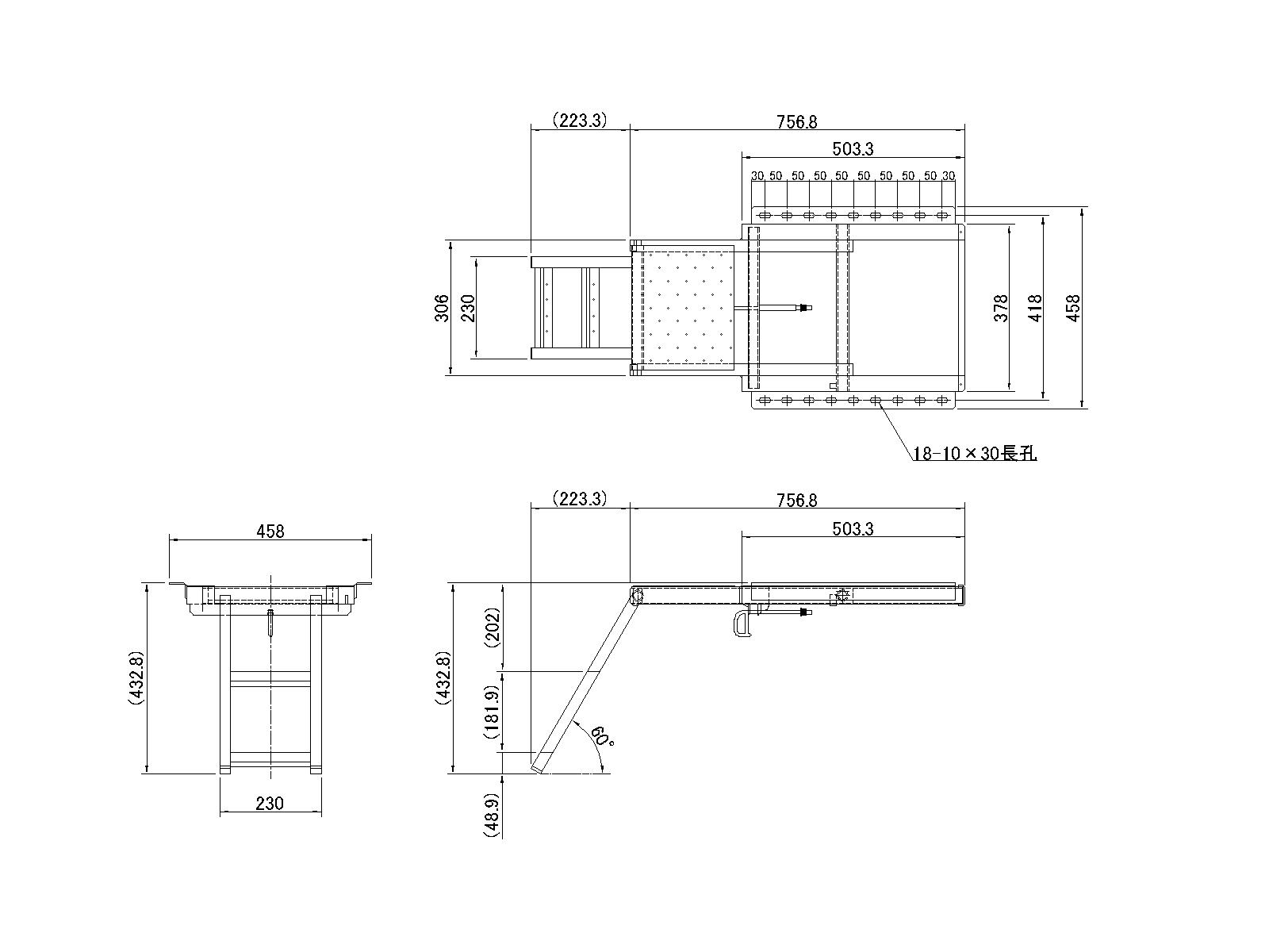 ※スライド3段ステップ のぼるくんをサイドあおりの床下に設置する場合、高いアオリのトラックにはスライドステップが干渉する為、設置出来ません。図面より、十分に設計検討をお願いします。