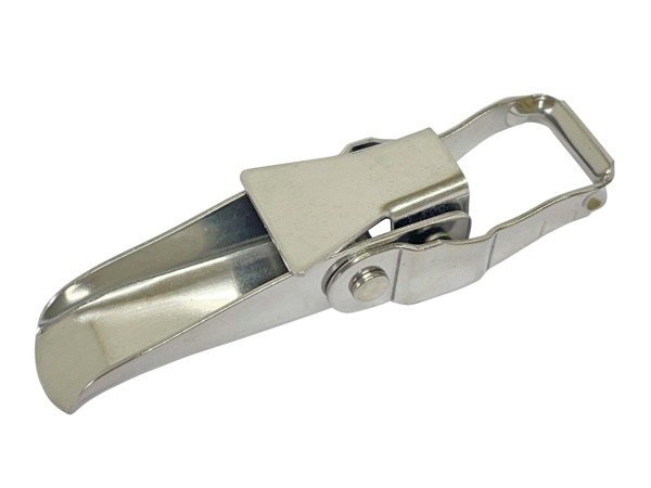 補修・交換用のステンレス工具箱キャッチです。本製品は、工具箱本体にスポット溶接という溶接方法で接合されております。リベット穴などは明いておりません。補修・交換の際は、スポット溶接機が無いと交換できませんのでご注意ください。
