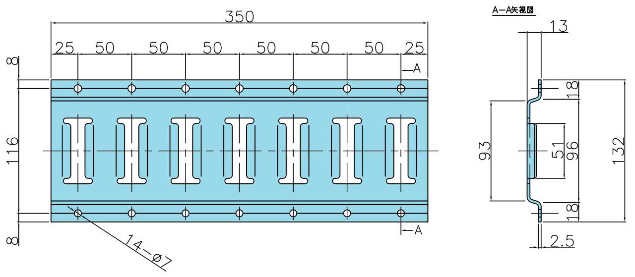 寸法//長さ:350mm、穴ピッチ:50mm