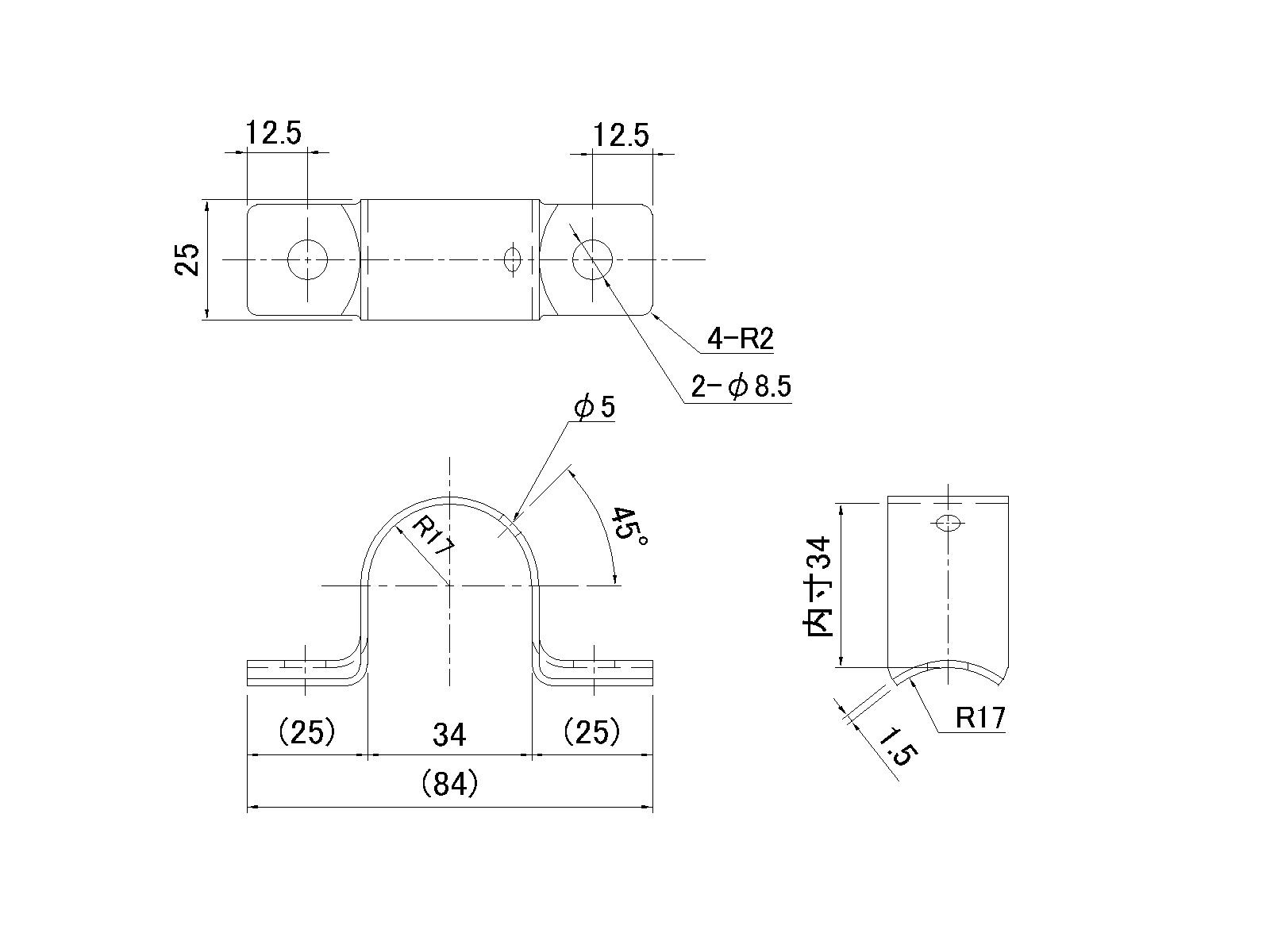 Specifications // For pipe φ34, fixed side: pipe φ34