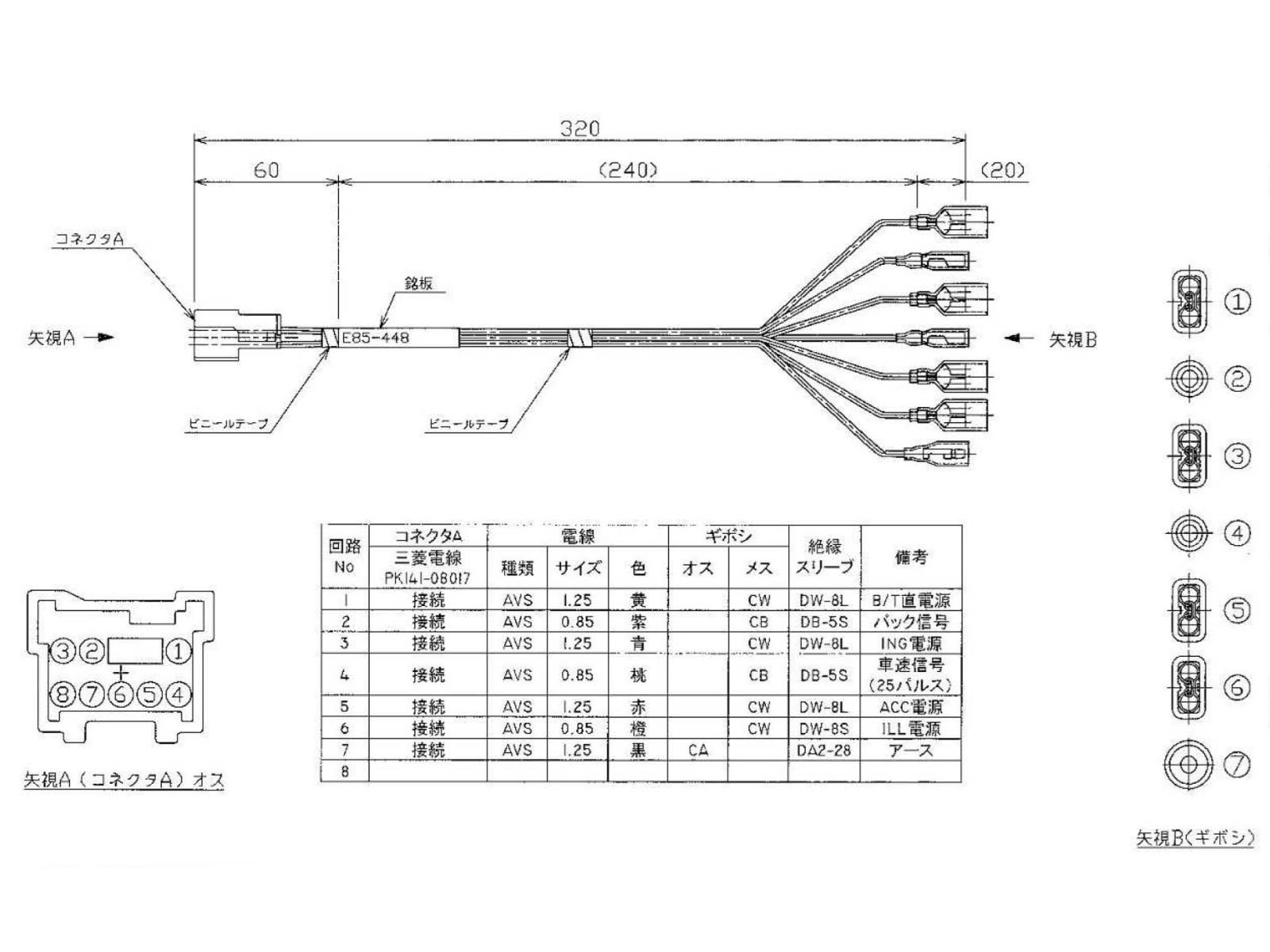 | 4 | 接続 | AVS | 0.85 | 桃 | CB | DB-5S | 車速信号 (25パルス) |