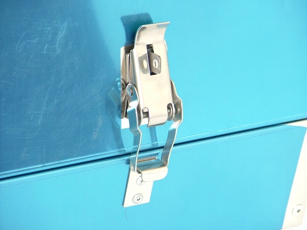 Specifications: Swing-type door that opens upwards, blue vinyl covering for surface protection