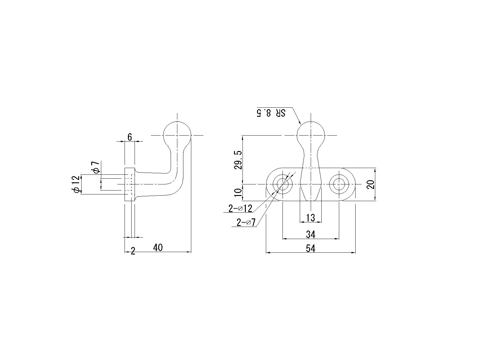 寸法//土台幅:54×高さ:49×出っ張り:39mm、穴ピッチ:34mm