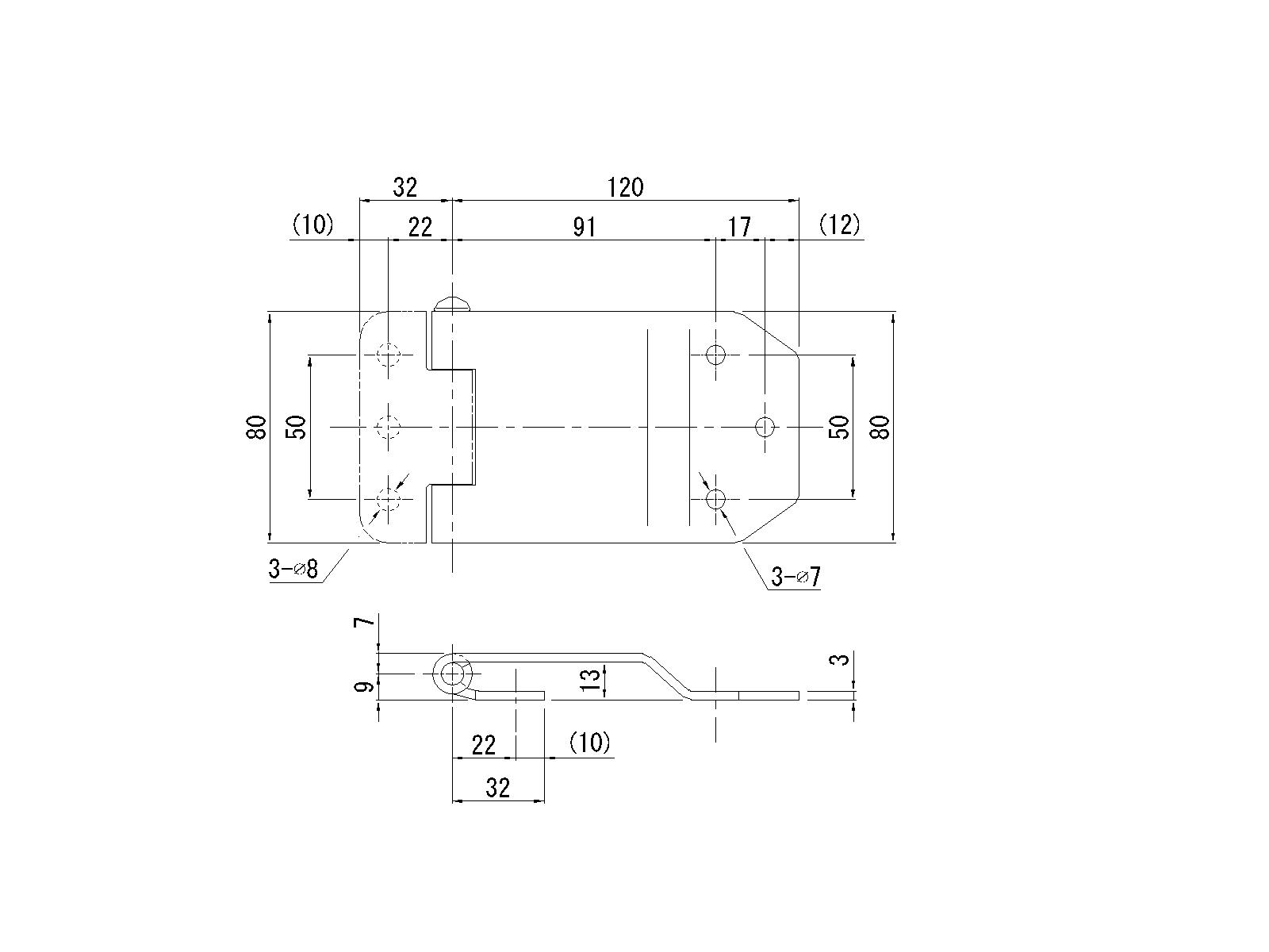 寸法//幅:80×長さ(軸より):120mm、板厚:3mm、重量:0.34kg