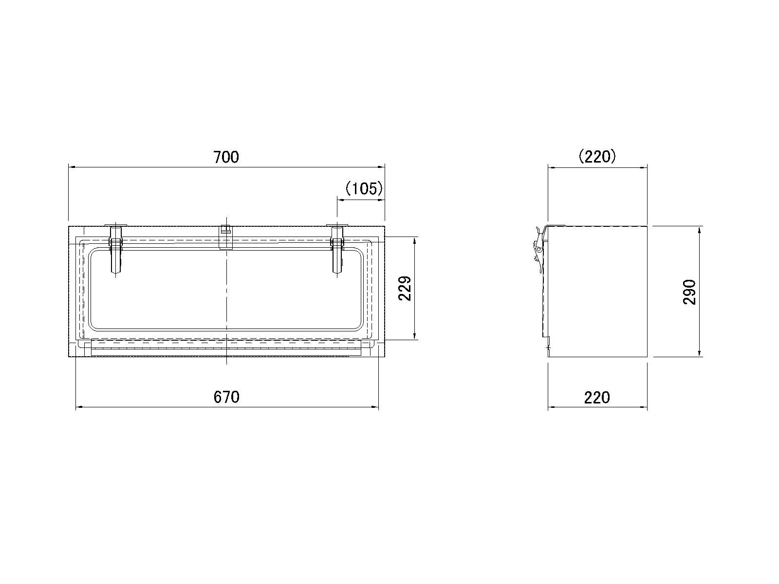 材質//本体:ステンレスSUS304、キャッチ・蝶番:ステンレスSUS304