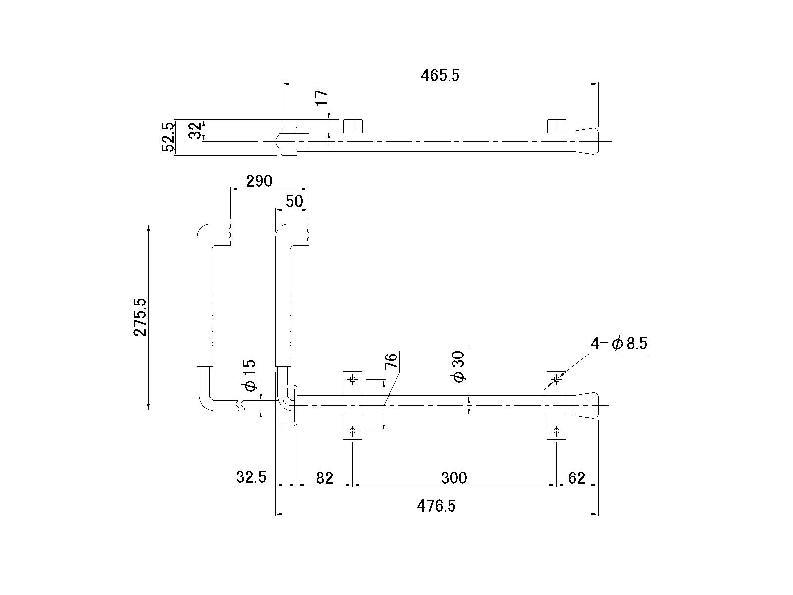 长度:444mm、直径:φ30、止动器高度:275.5mm、行程:290mm、重量:2.13kg