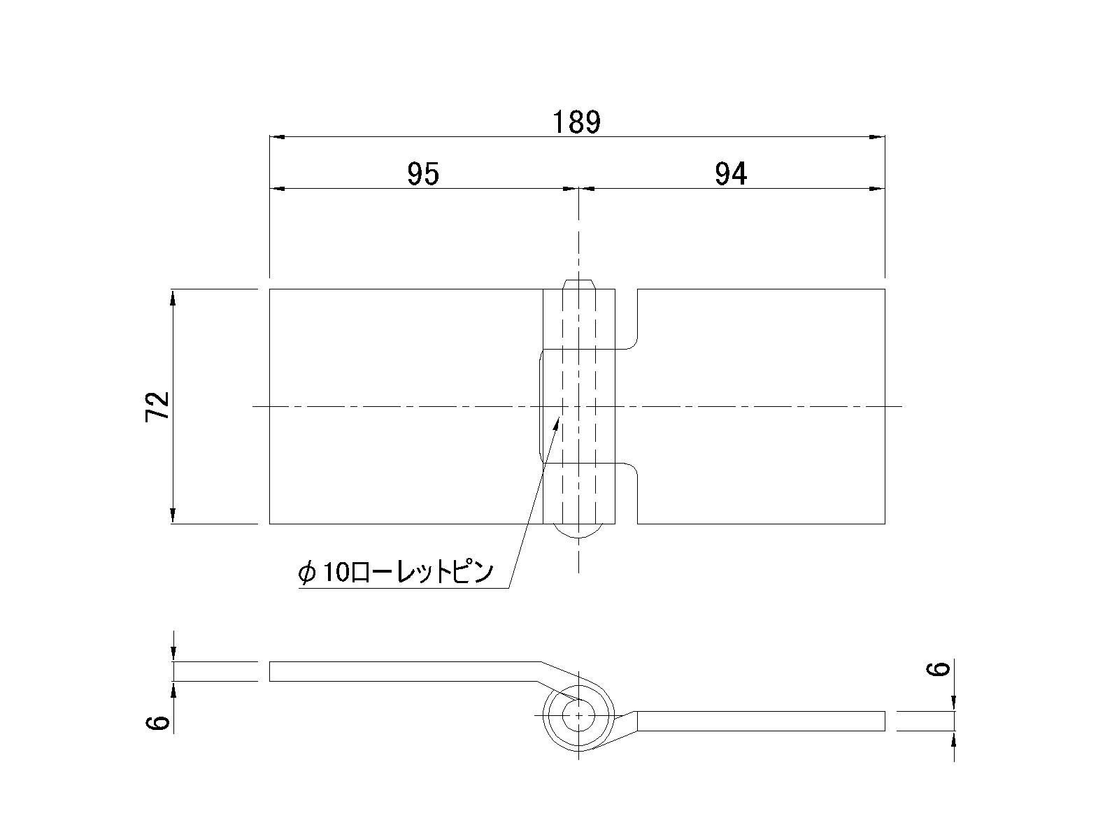 Dimensions // Width: 72 x Height: 189 mm, Plate thickness: 6.0 mm, Pin diameter: φ10, Weight: 0.76 kg
